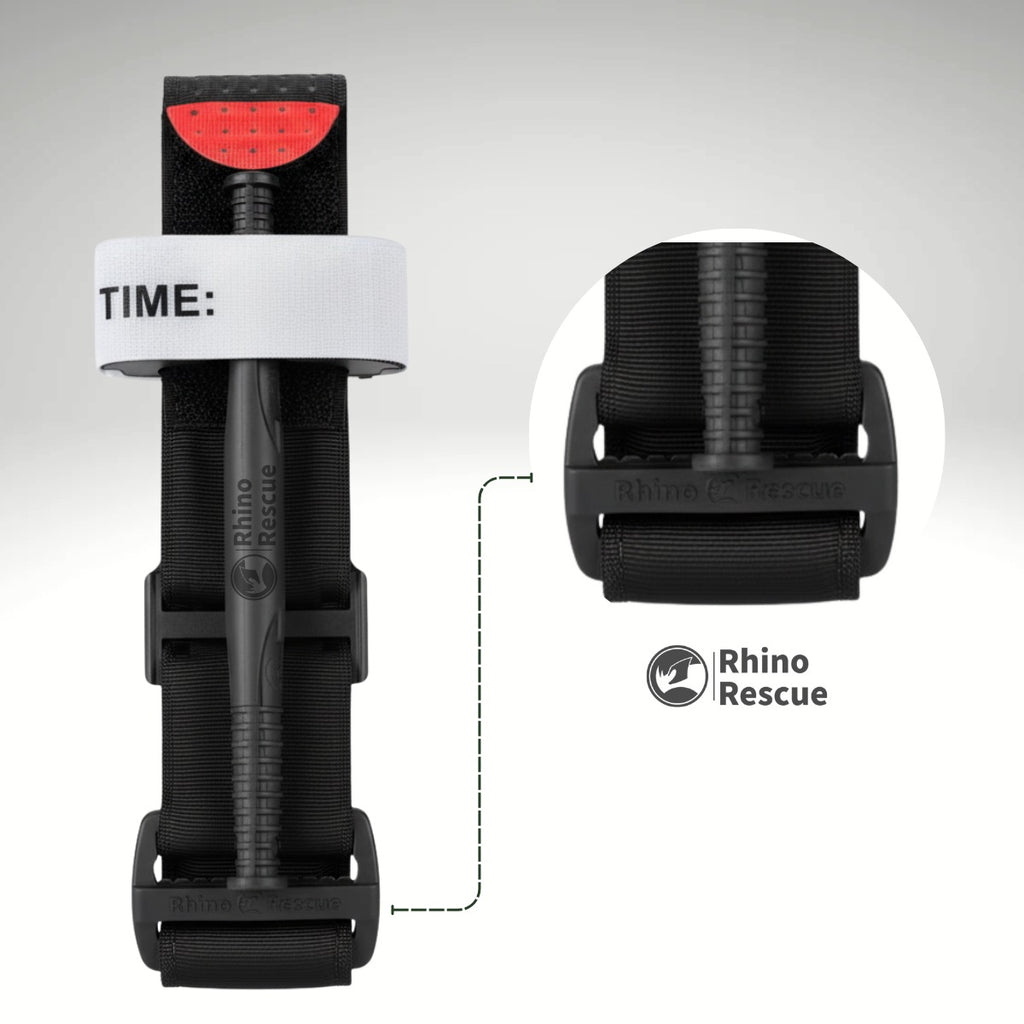 1️⃣ - Torniquete Rhino Rescue: Torniquete tático Rhino Rescue é preconizado para controle de hemorragia massiva nas extremidades dos membros. Proporciona ao Operador a autoaplicação. Possui sistema único de fivela para correto tracionamento reduzindo ocorrência de folgas e aplicação extremamente rápida.
