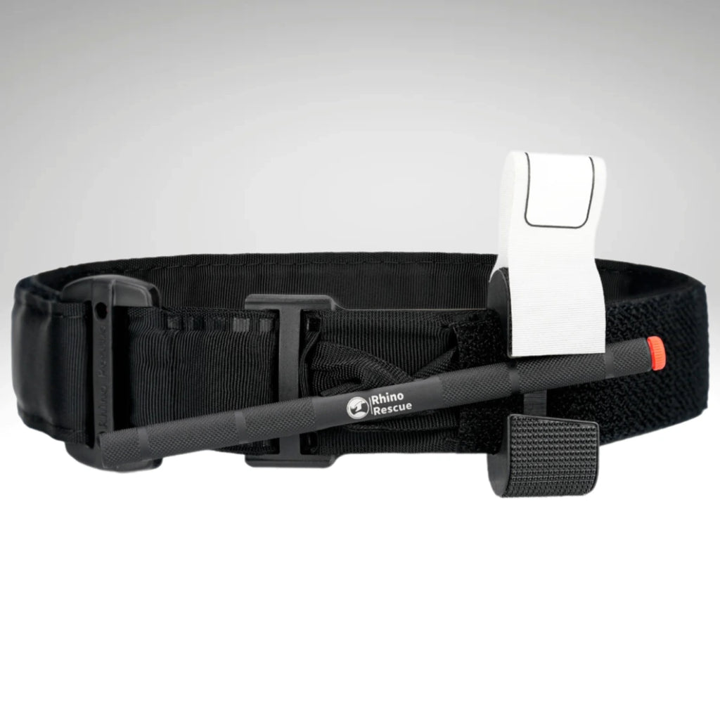 1️⃣ - Torniquete Rhino Rescue: é preconizado para controle de hemorragia massiva nas extremidades dos membros. Proporciona ao Operador a autoaplicação. Possui sistema único de fivela para correto tracionamento reduzindo ocorrência de folgas e aplicação extremamente rápida.