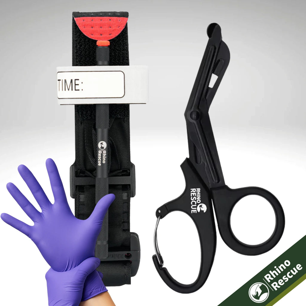 1️⃣ - Torniquete Rhino Rescue: Torniquete tático Rhino Rescue é preconizado para controle de hemorragia massiva nas extremidades dos membros. Proporciona ao Operador a autoaplicação. Possui sistema único de fivela para correto tracionamento reduzindo ocorrência de folgas e aplicação extremamente rápida.